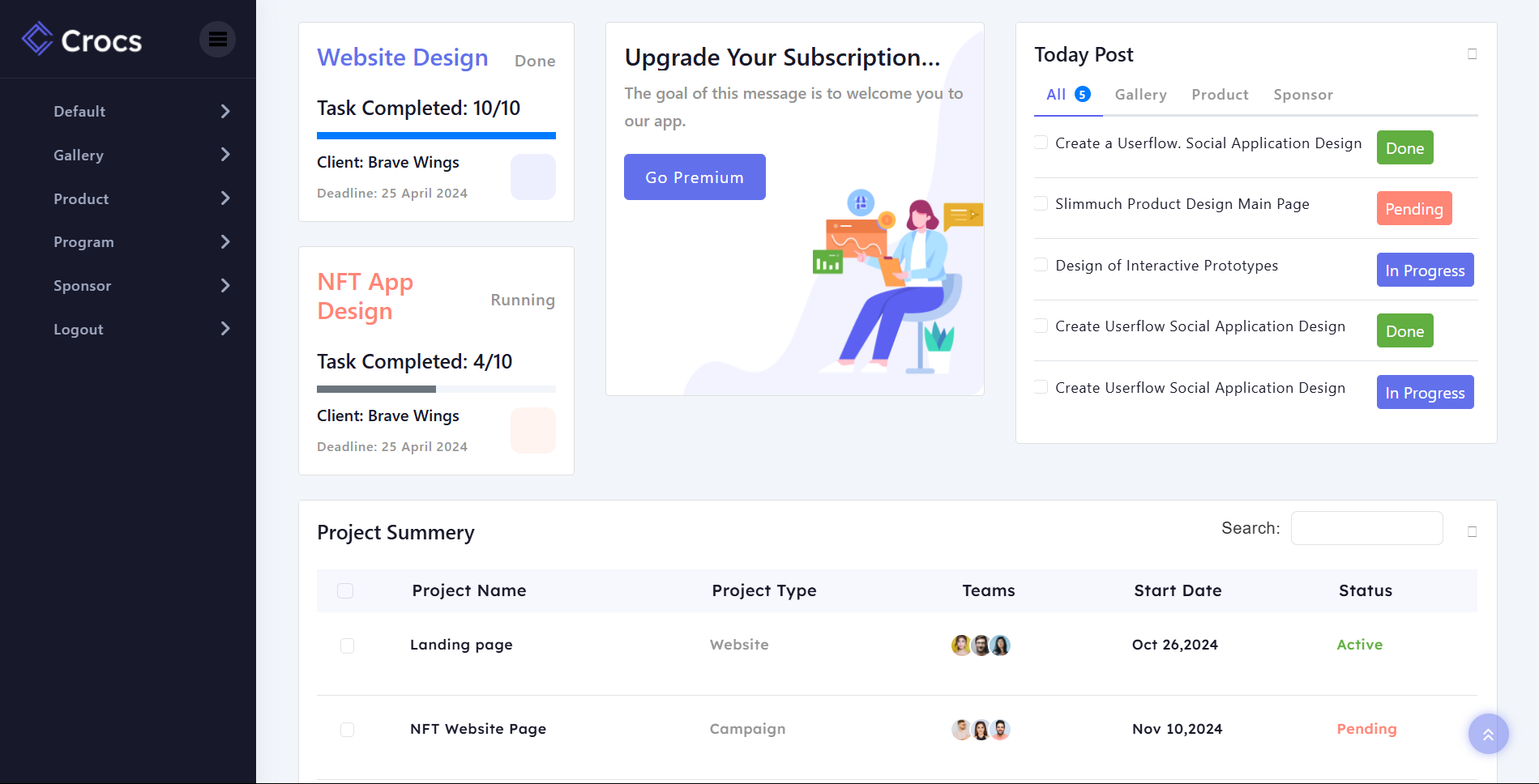 This CRUD website is a project management dashboard as well as corporate e-commerce, allowing users to easily manage tasks, teams and transactions on one platform.